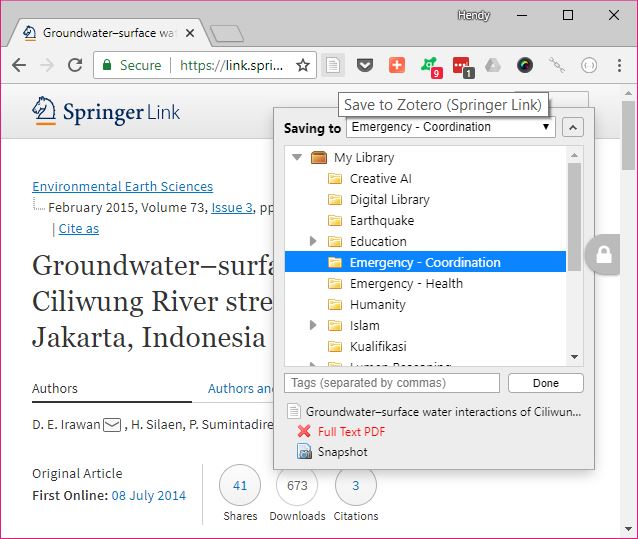 1. Pasang Zotero Browser Connector untuk browser Anda.